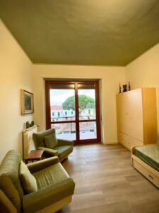 L'immobile è composto da ampia entrata, soggiorno con cucina moderna e funzionale completamente attrezzata e dotata di finestra, una camera da letto matrimoniale, sala con due posti letto, ideale come seconda camera o studio, doppi servizi, due balconi molto luminoso e con vista aperta.